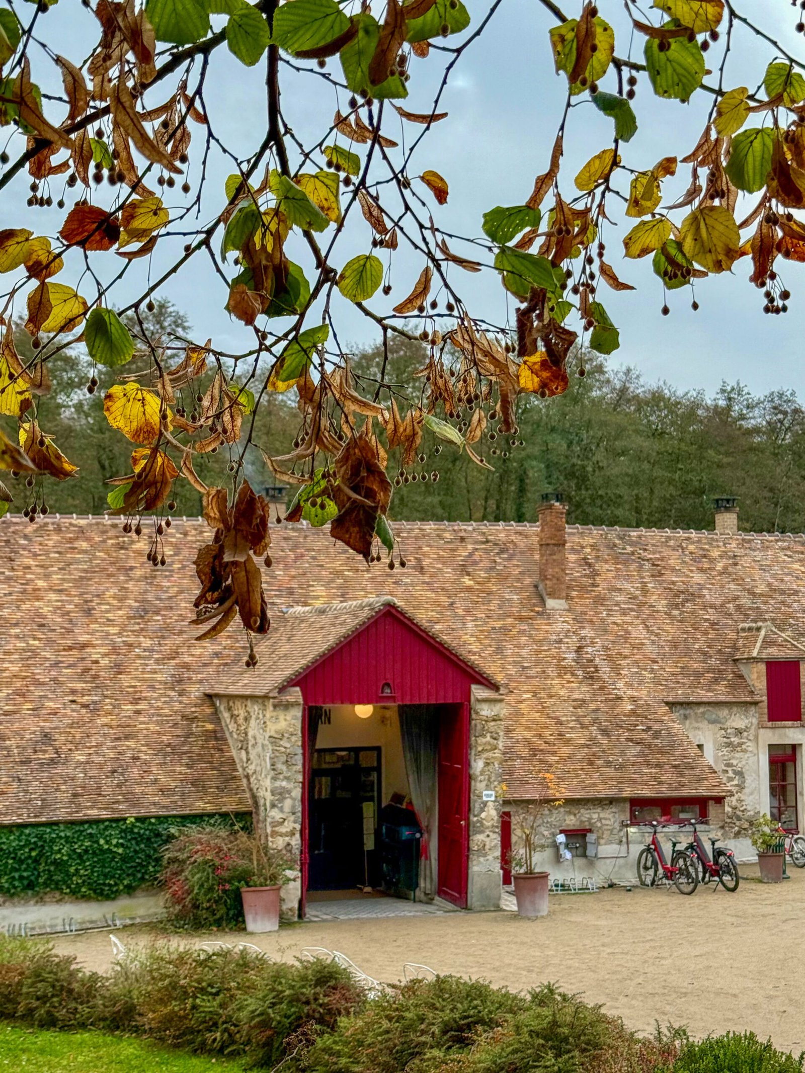 Les chambres et suites sont nichées dans les anciennes granges rouges du domaine, rénovées avec soin pour conserver l’âme du lieu.